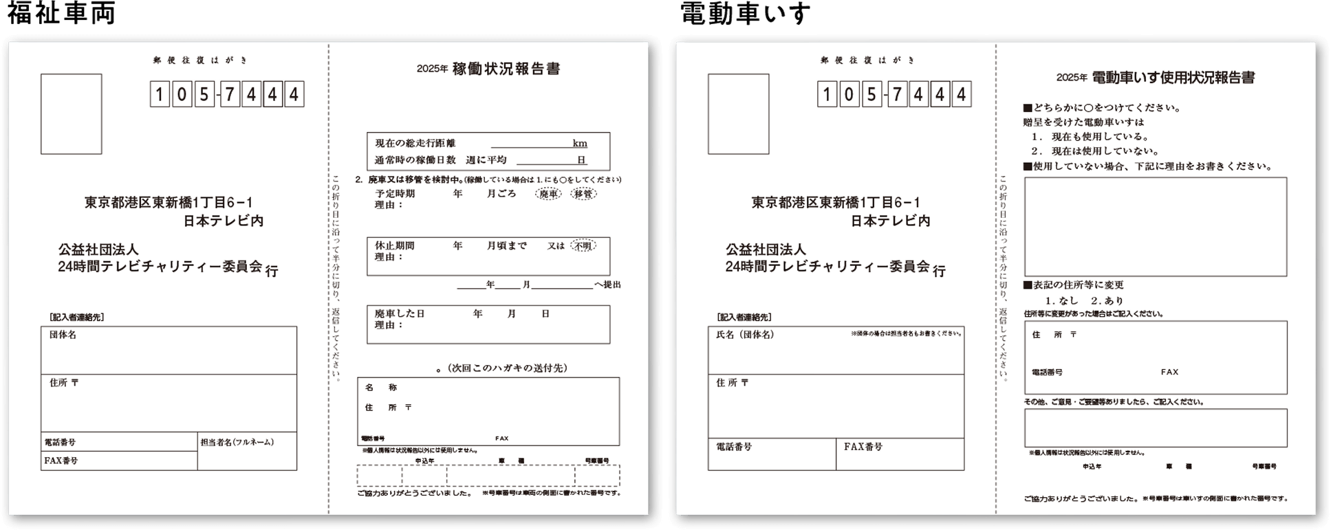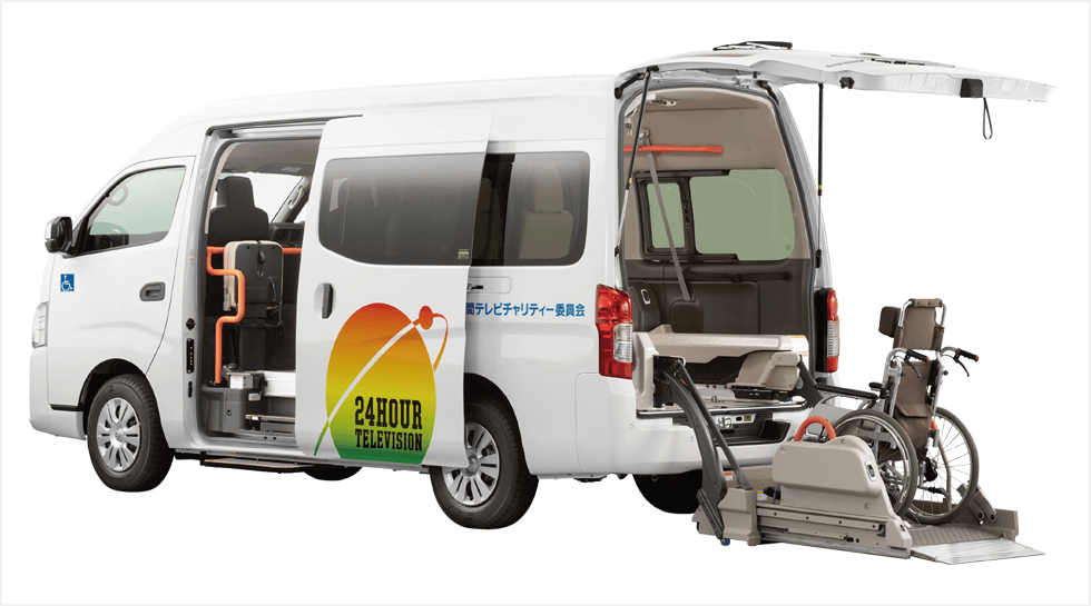 24時間テレビチャリティー委員会では、以下の4車種の福祉車両と福祉サポート車を贈呈しています。